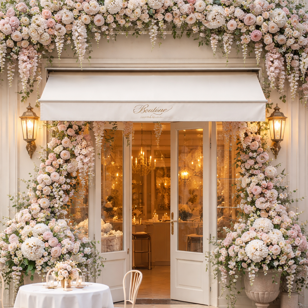 Une scénographie de façade élégante, pensée pour sublimer l’identité du lieu.